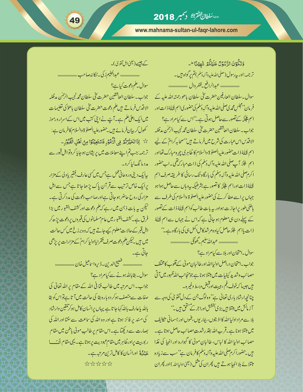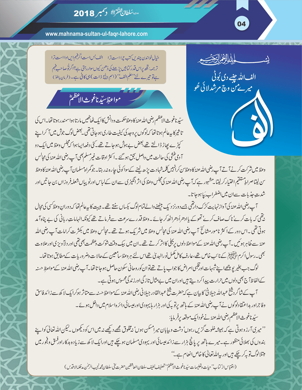 ماہنامہ سلطان الفقر لاہور