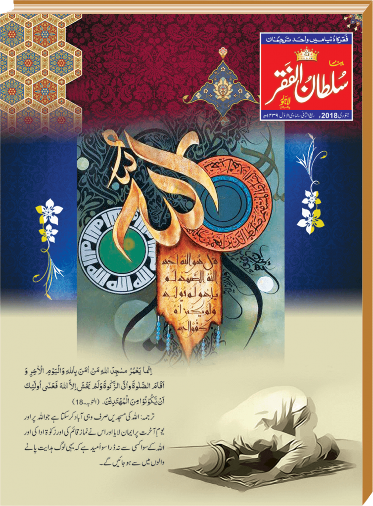 شمارہ جنوری 2018ء ماہنامہ سلطان الفقر لاہور–جنوری2018ء فہرست مضامین ماہنامہ سلطان الفقر جنوری2018ء کے مضامین کی فہرست درج ذیل ہے ان میں کسی بھی مضمون کے مطالعہ کے لیے اس پر کلک کریں۔ حضرت ابو بکر صدیقؓ بحیثیتِ طالبِ مولیٰ خانقاہ اور ادابِ خانقاہی خانقاہ اورمسجد کی فضیلت امیر الکونین تدبر اور تفکر قیامِ مسجد و خانقاہ خانقاہی نظام فقر اور طب آپ کے خطوط رپورٹ۔محفل میلادِ مصطفیٰؐ آن لائن پڑھیے ڈاؤن لوڈ کیجیے