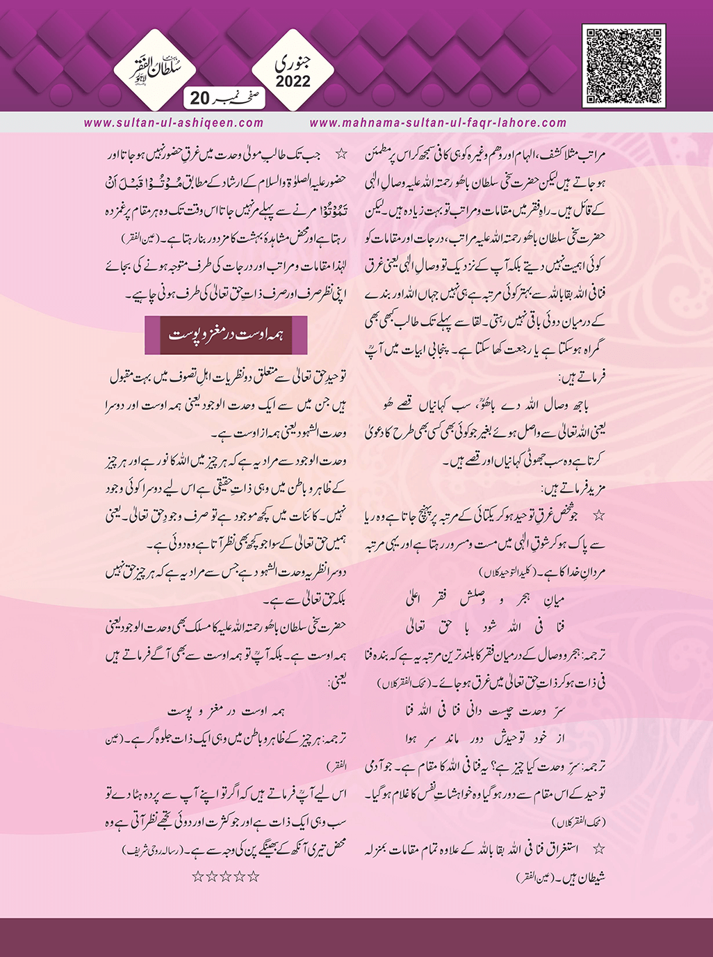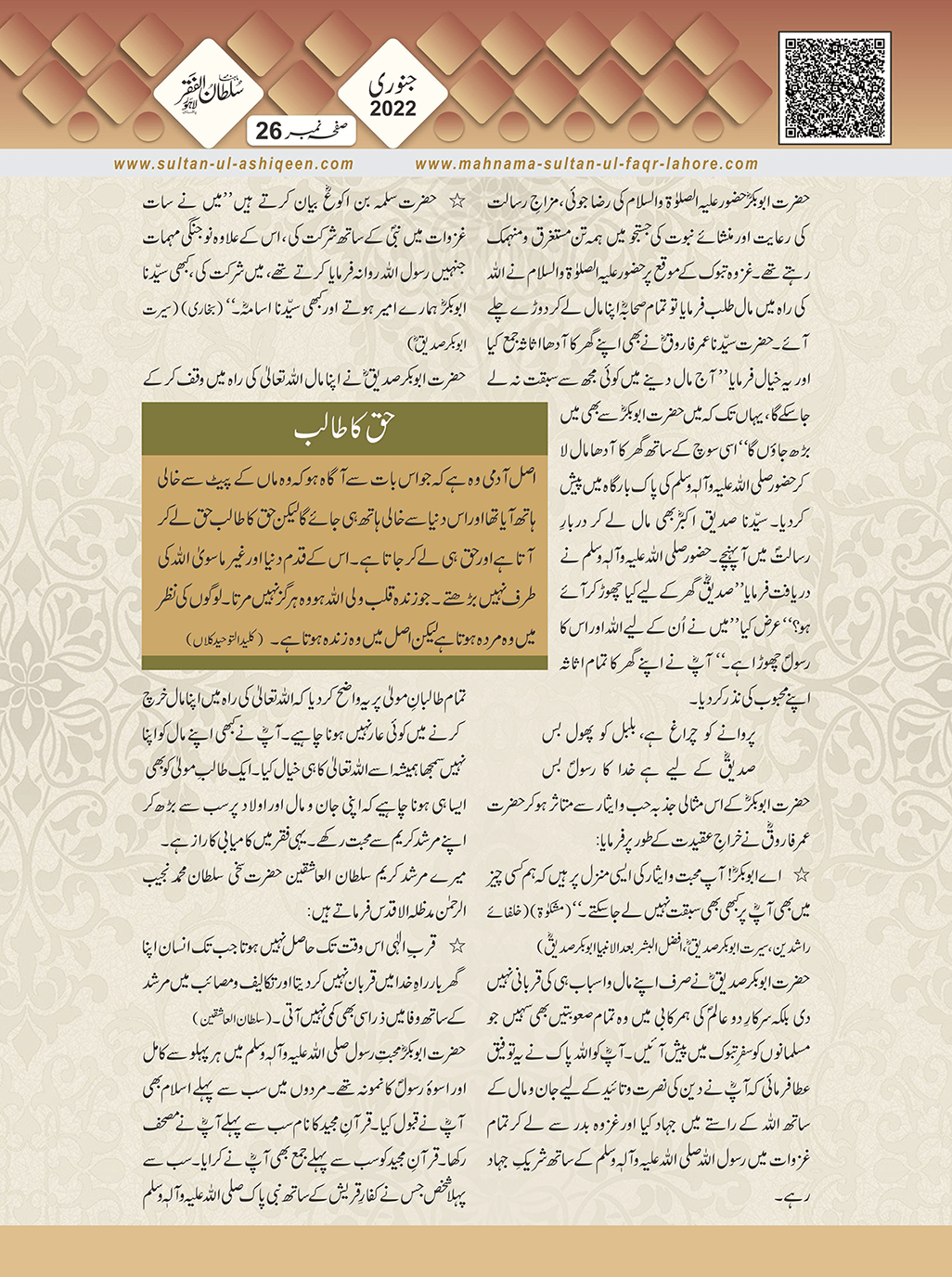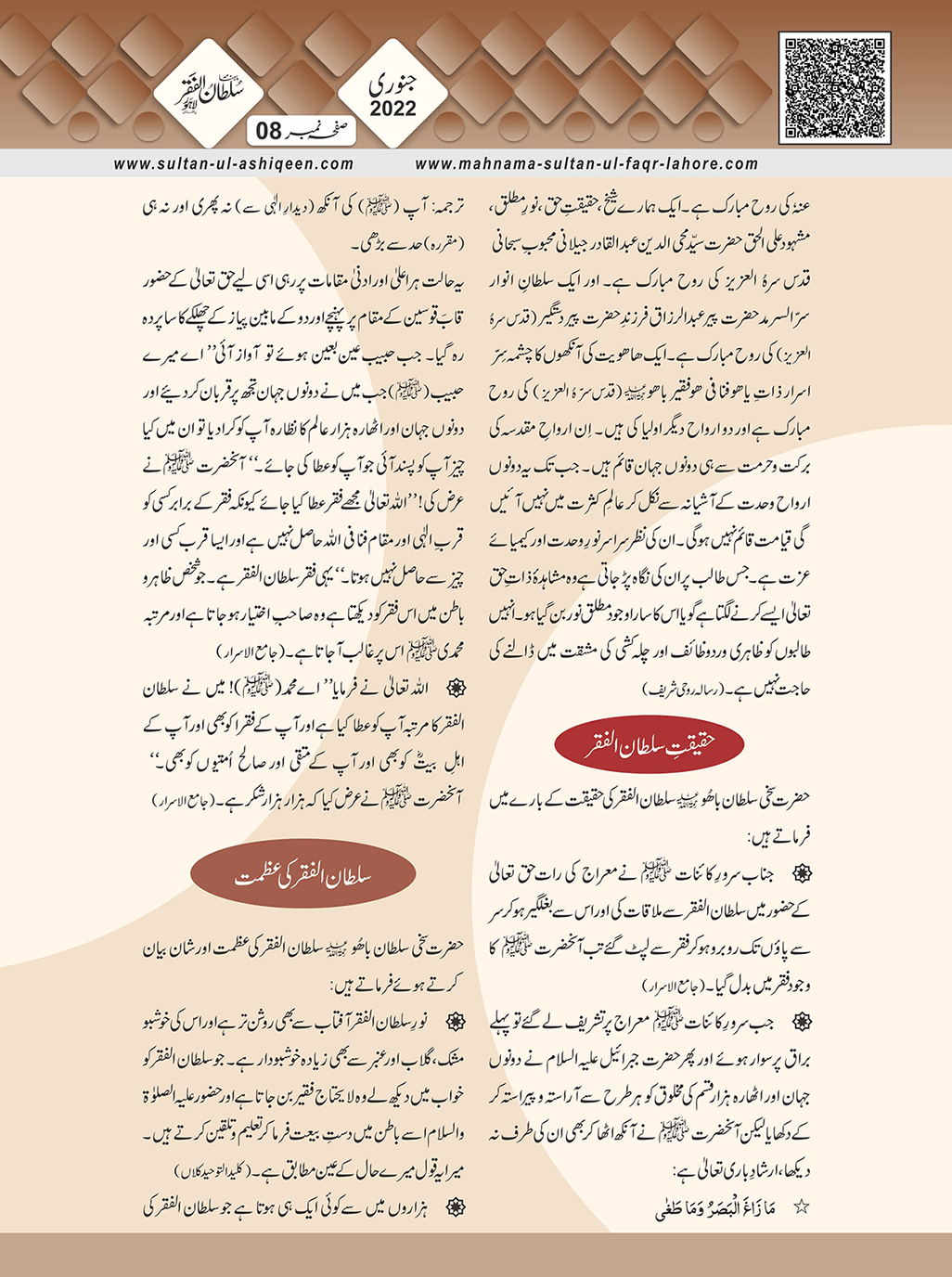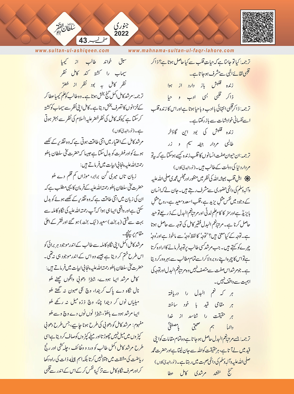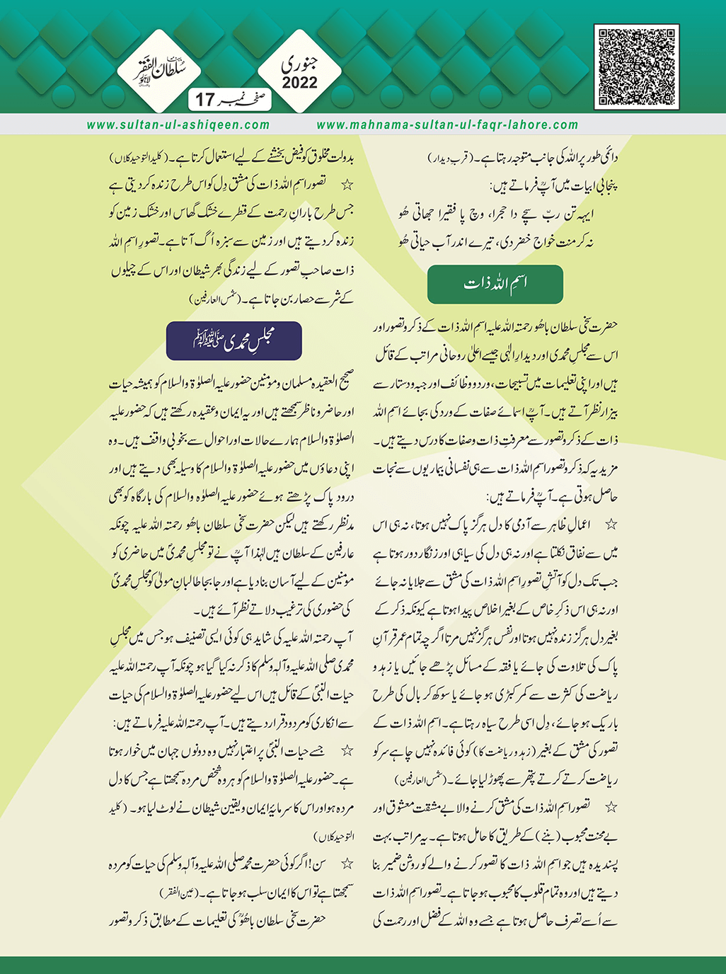 1. Sultan -ul -Faqr Magazine Faqr ke talimaat ko poori Dunia mein Phaila raha hey.iss magazine ko lazmi perhna chaheay.