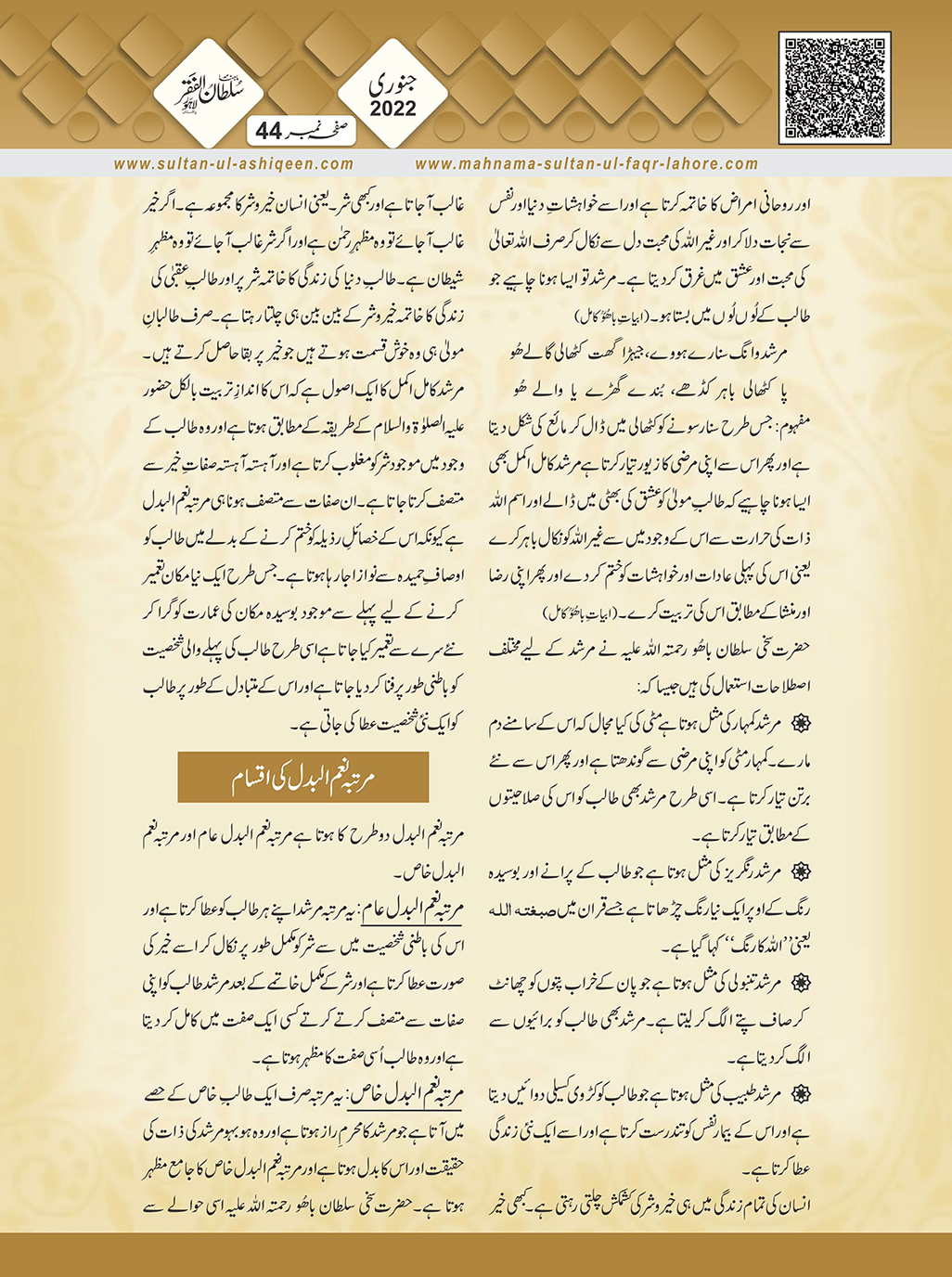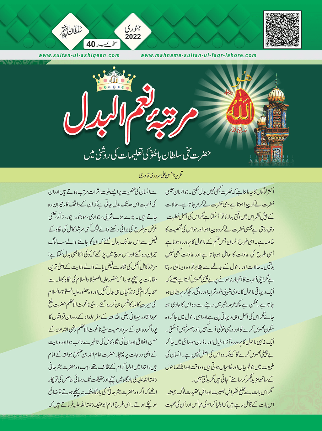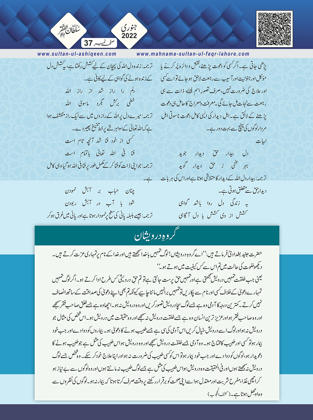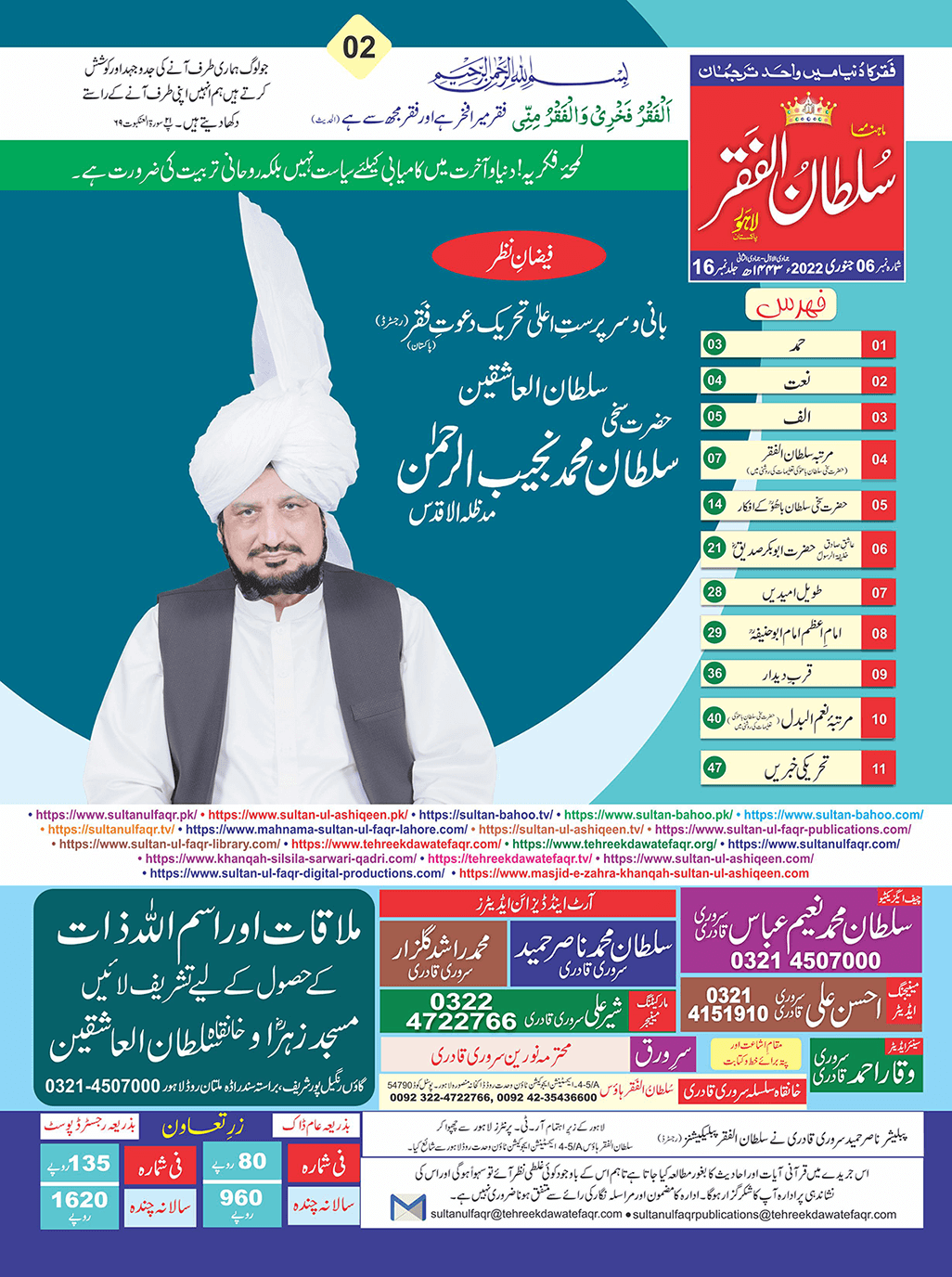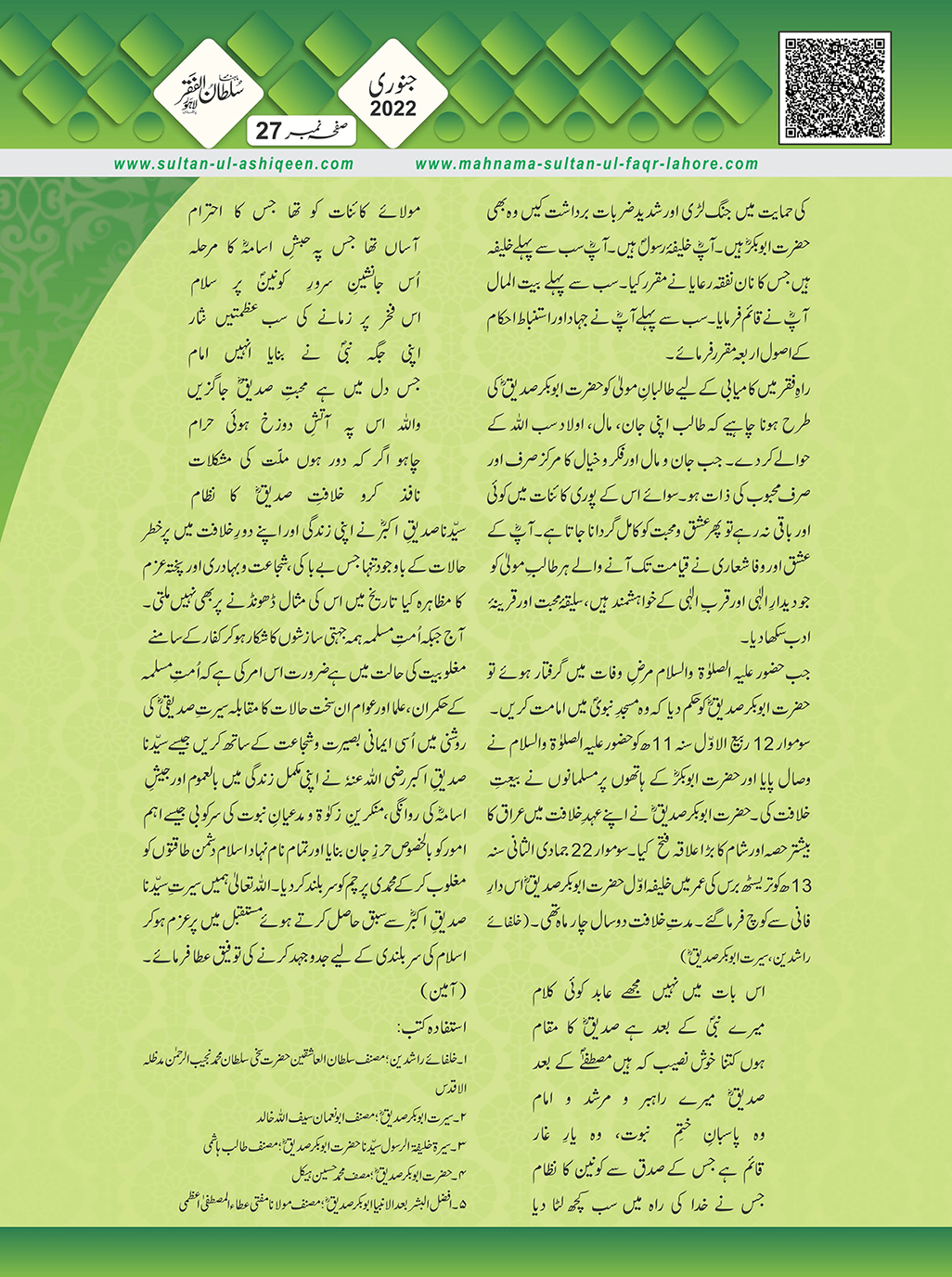 1. Sultan -ul -Faqr Magazine Faqr ke talimaat ko poori Dunia mein Phaila raha hey.iss magazine ko lazmi perhna chaheay.