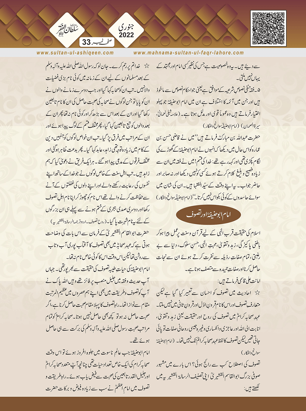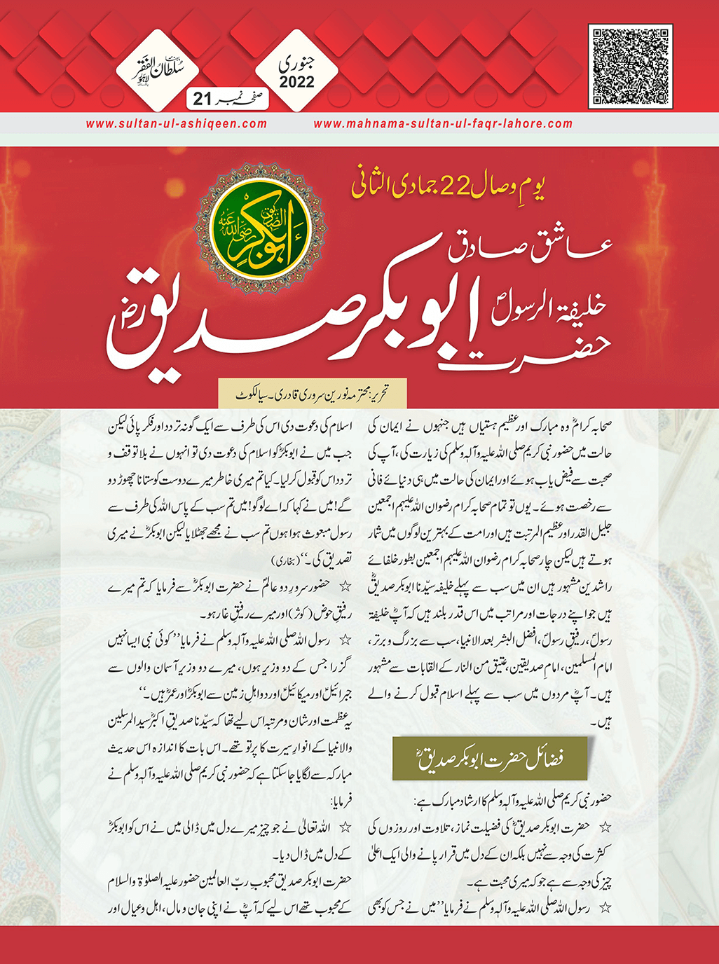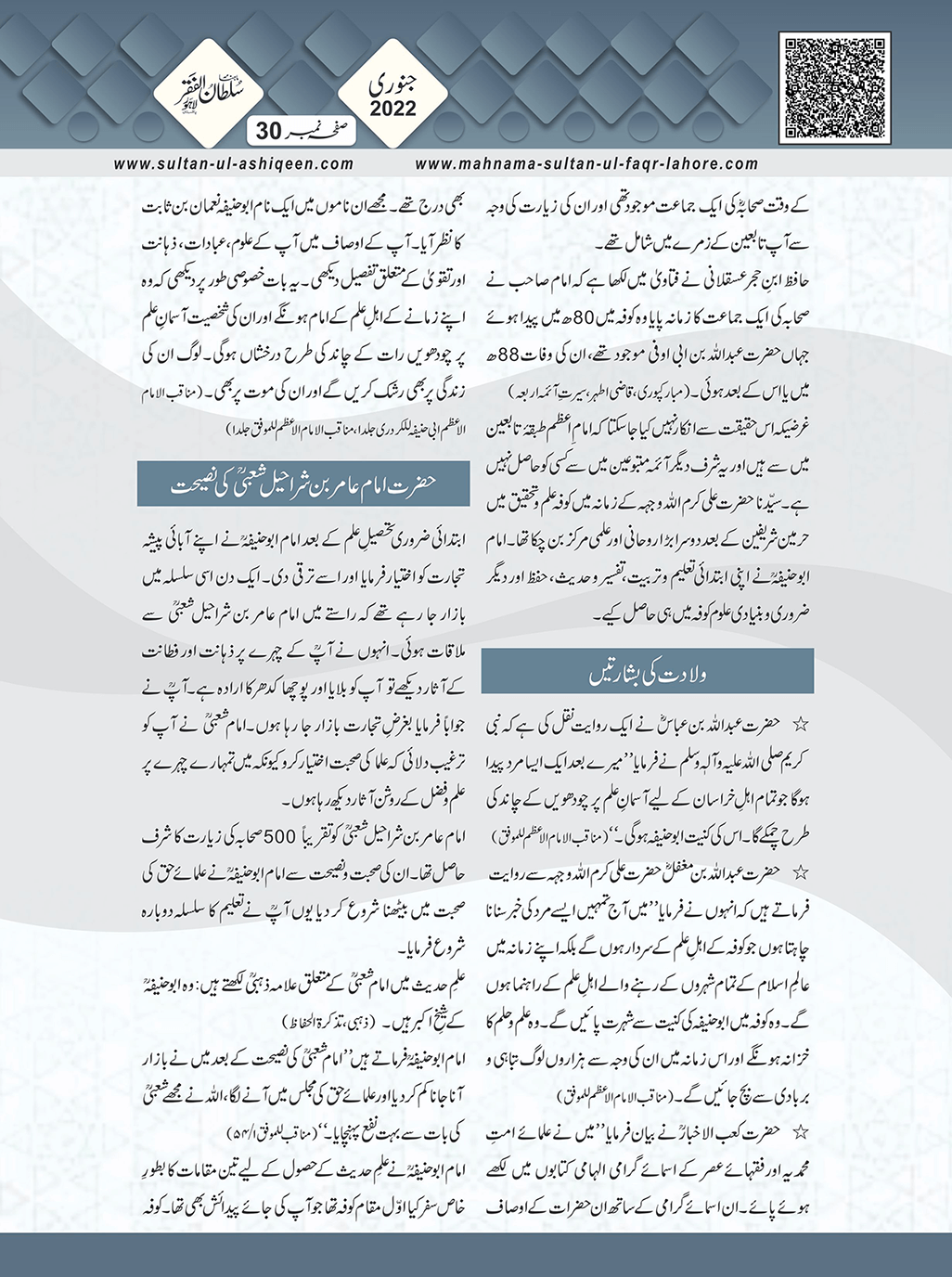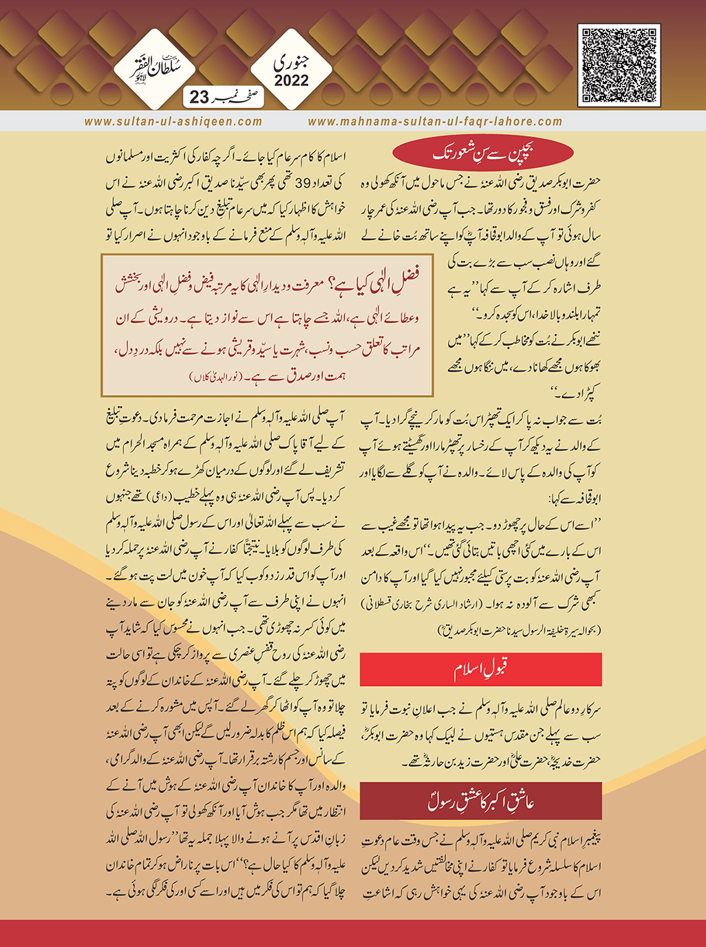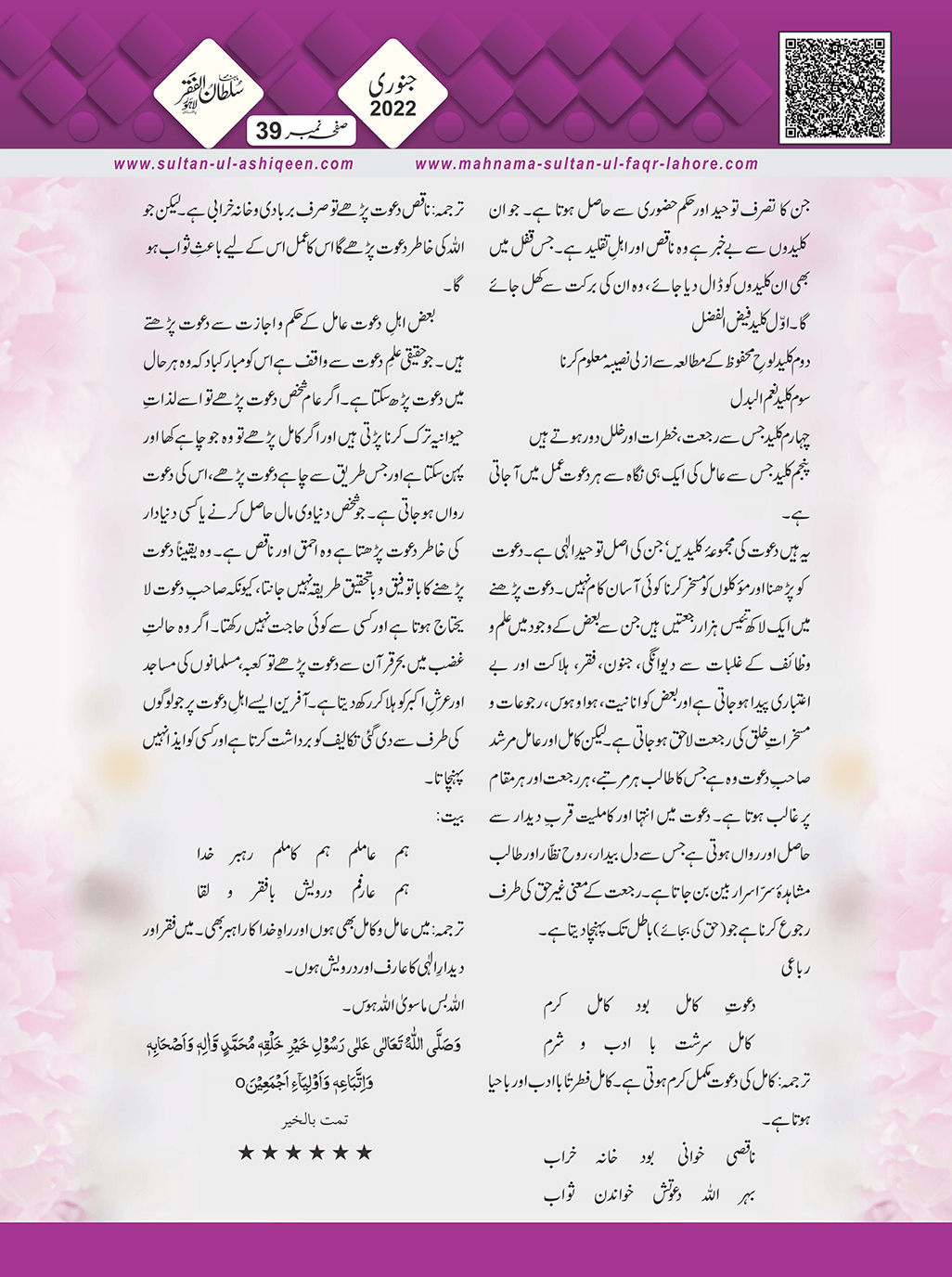 1. Sultan -ul -Faqr Magazine Faqr ke talimaat ko poori Dunia mein Phaila raha hey.iss magazine ko lazmi perhna chaheay.