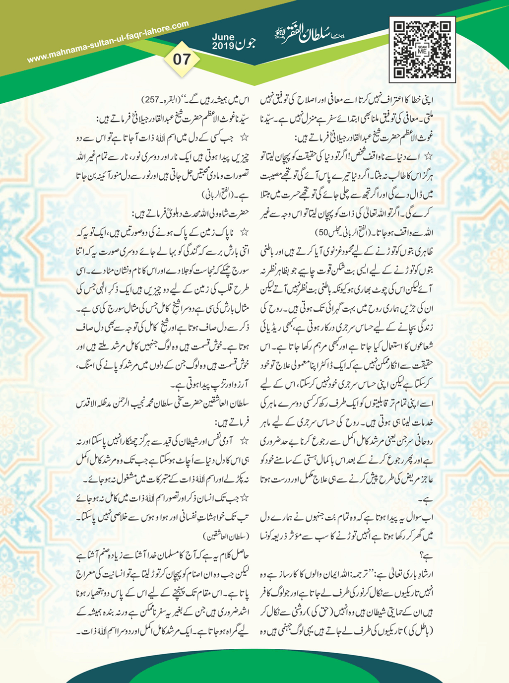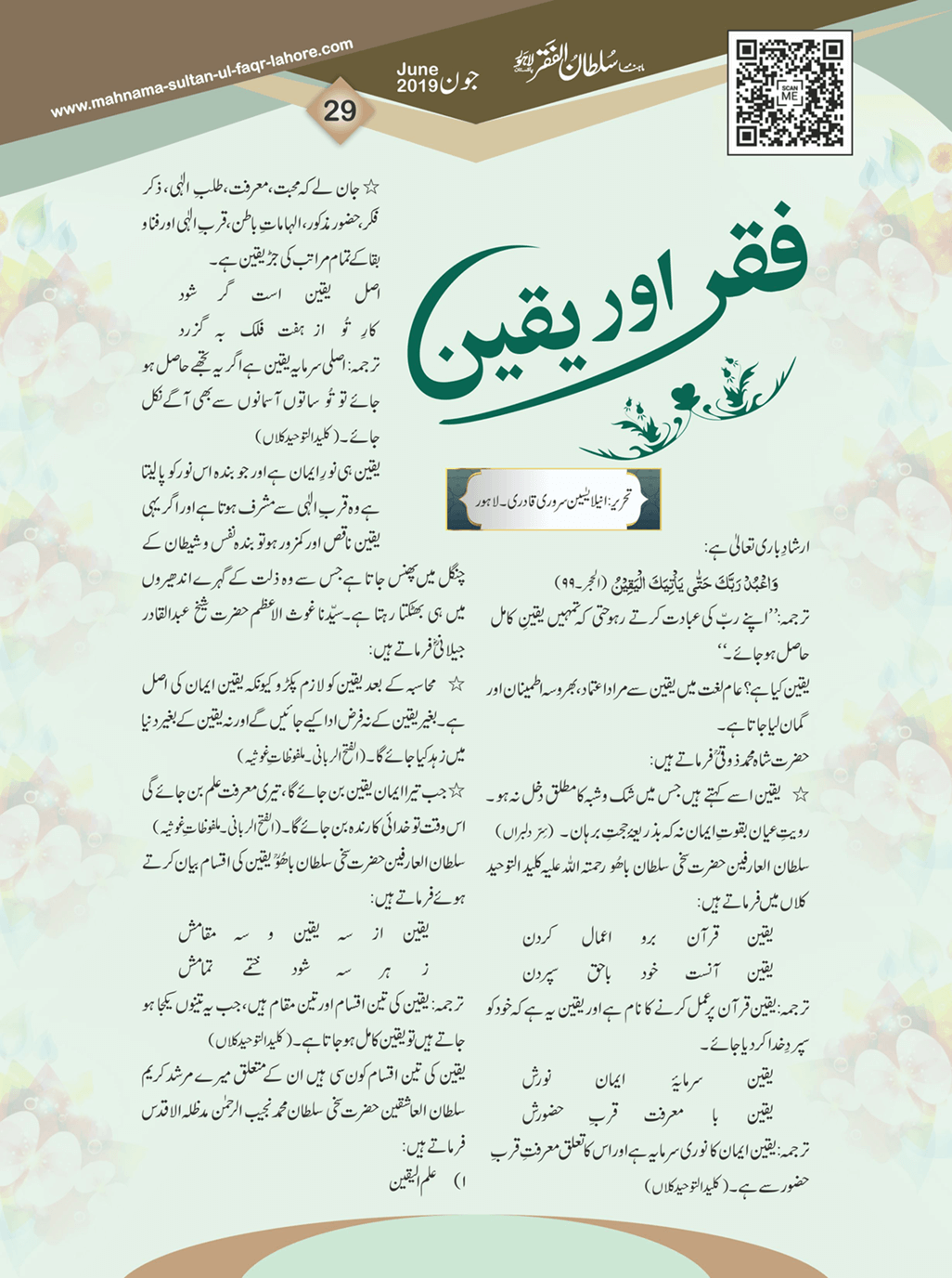 ماہنامہ سلطان الفقر لاہور