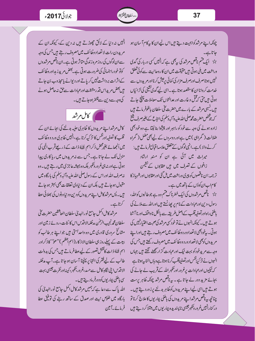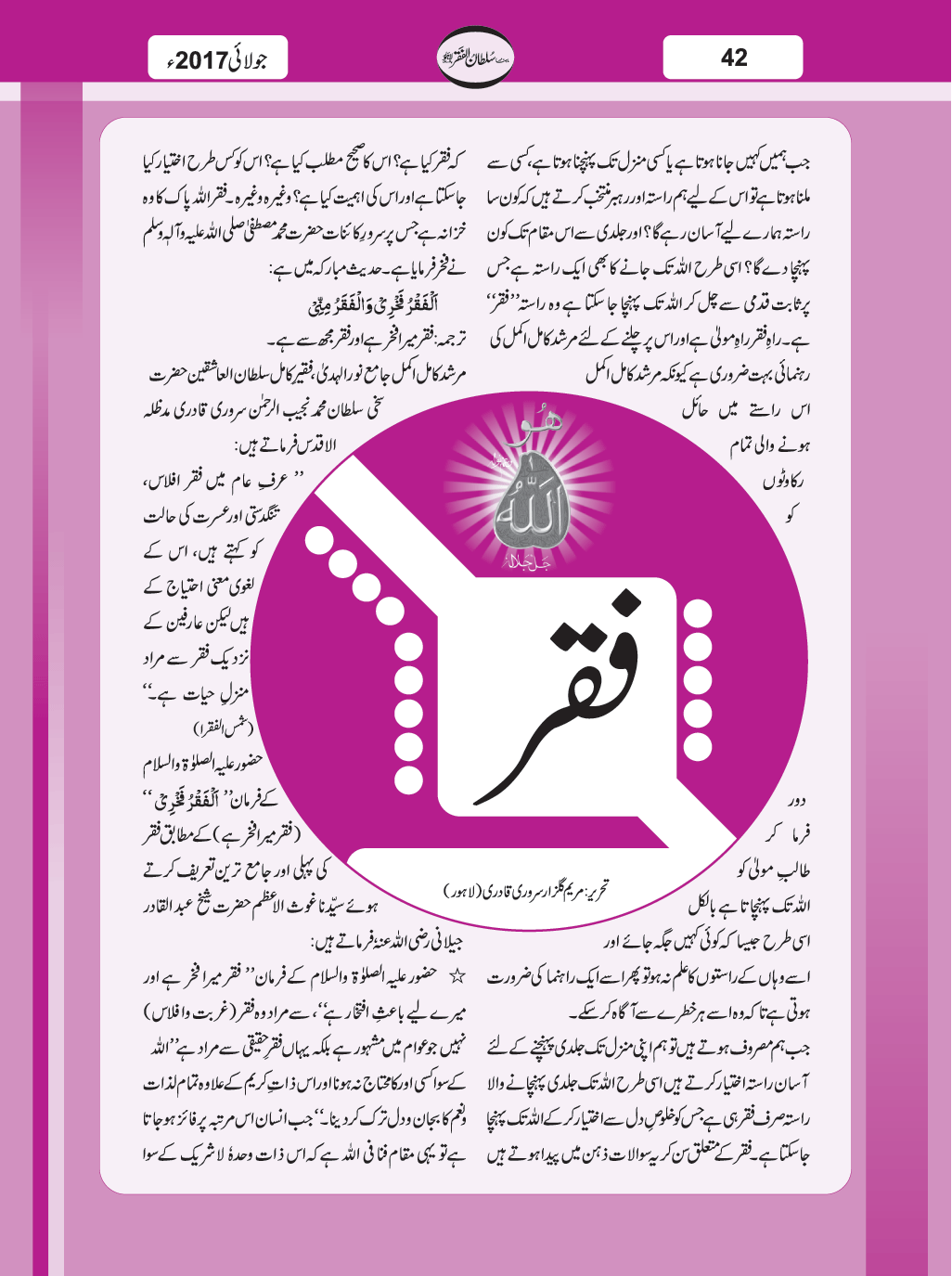 ماہنامہ سلطان الفقر لاہور