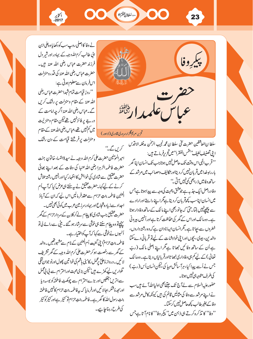 ماہنامہ سلطان الفقر لاہور