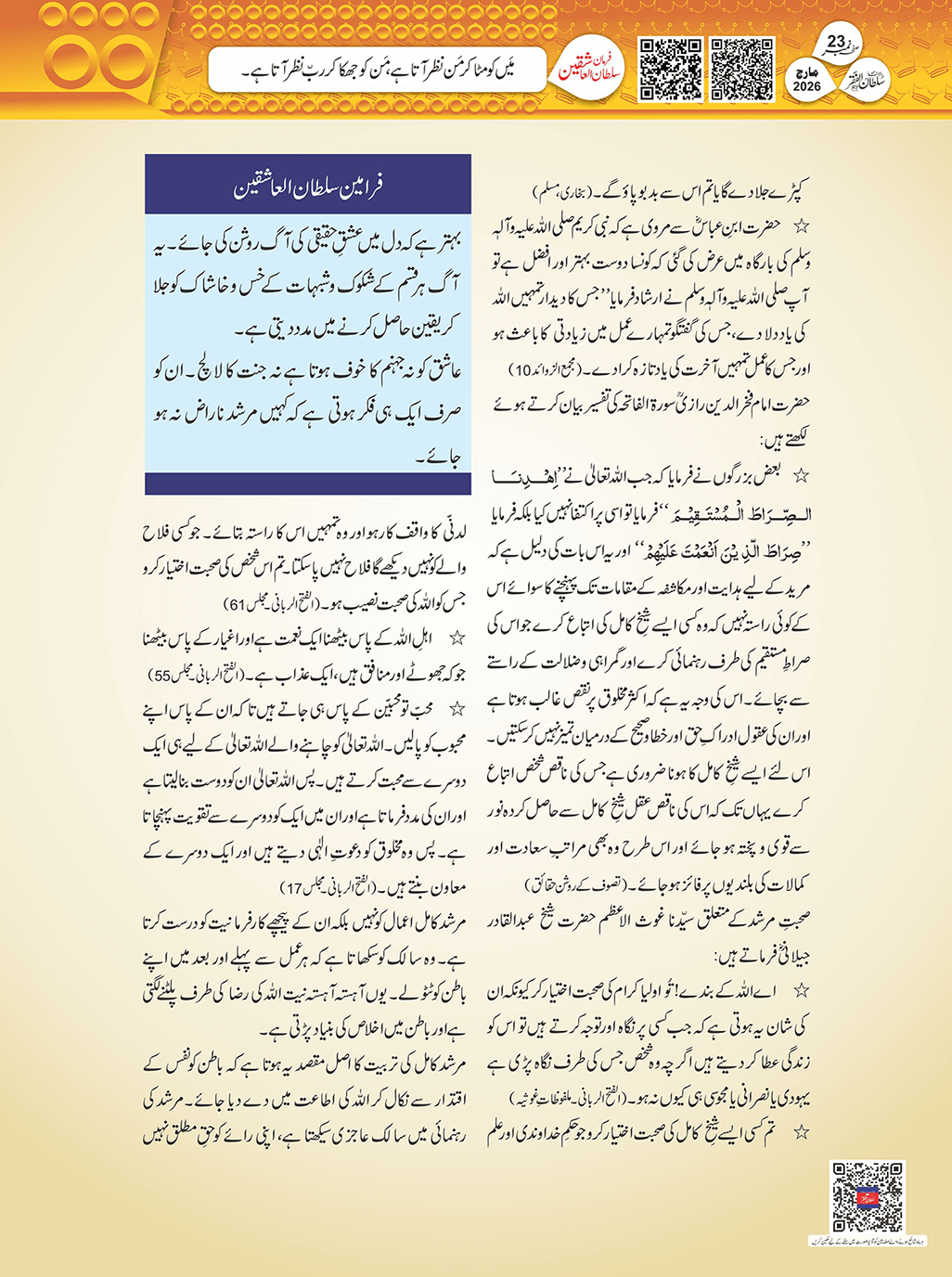 فرمودات سلطان العارفین Farmodat Sultan-Ul-Arifeen