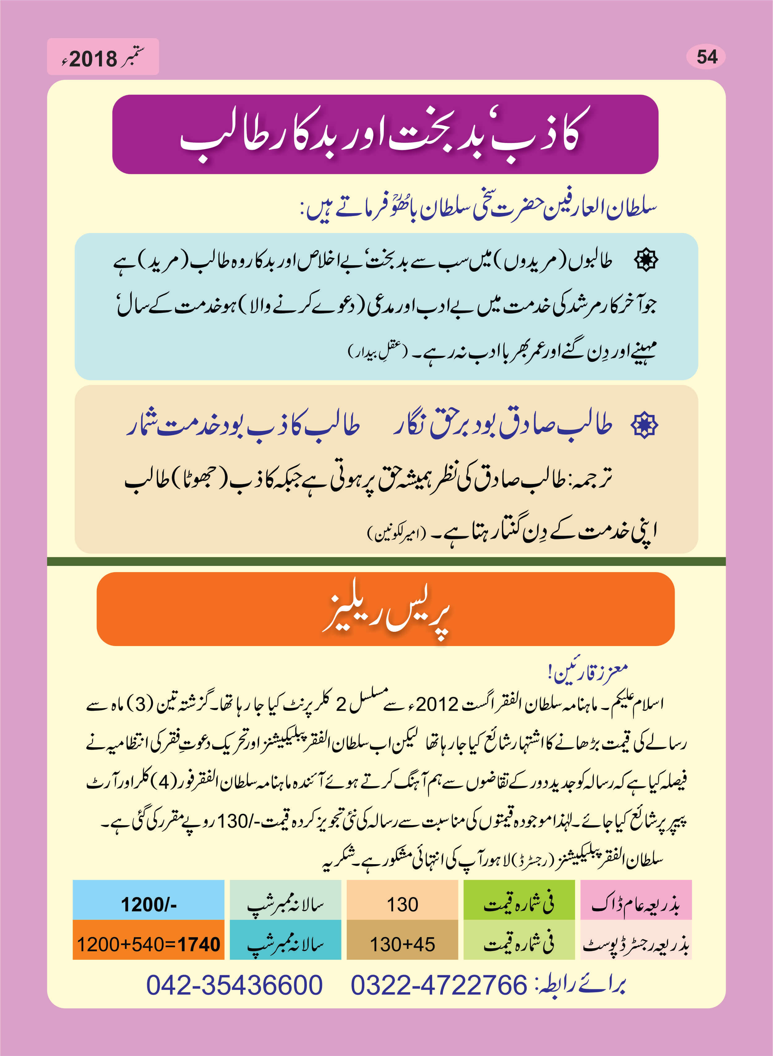 ماہنامہ سلطان الفقر لاہور